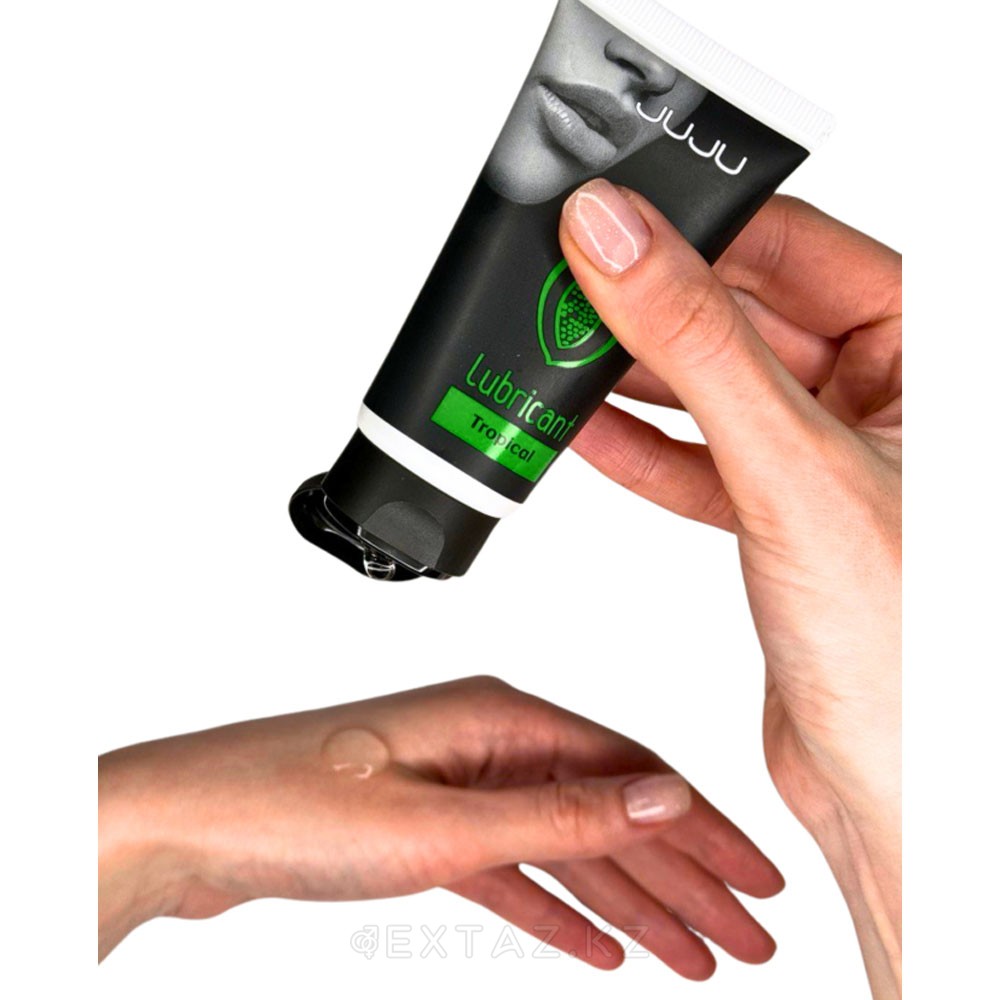 Съедобный лубрикант JUJU на водной основе со вкусом тропических фруктов обеспечивает лёгкое и комфортное скольжение. Формула равномерно распределяется по поверхности, не создавая липкости и ощущения тяжести.
