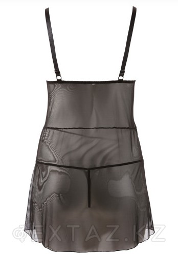 Полу-прозрачная сорочка с кружевным бюстье и декоративной шнуровкой, "разлетается" спереди, пикантно приоткрывая трусики и животик, всё в классическом чёрном цвете - соблазнительный ансамбль из коллекции Cottelli Collection от немецкого производителя секс-атрибутики и белья Orion - невесомо колыхаясь на Вашем теле станет главным украшением ночи для Вашего партнёра.