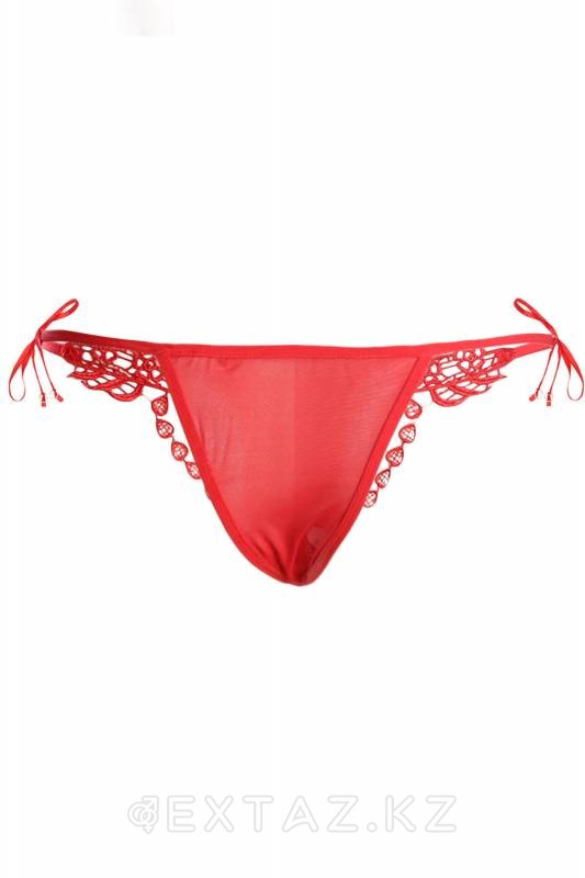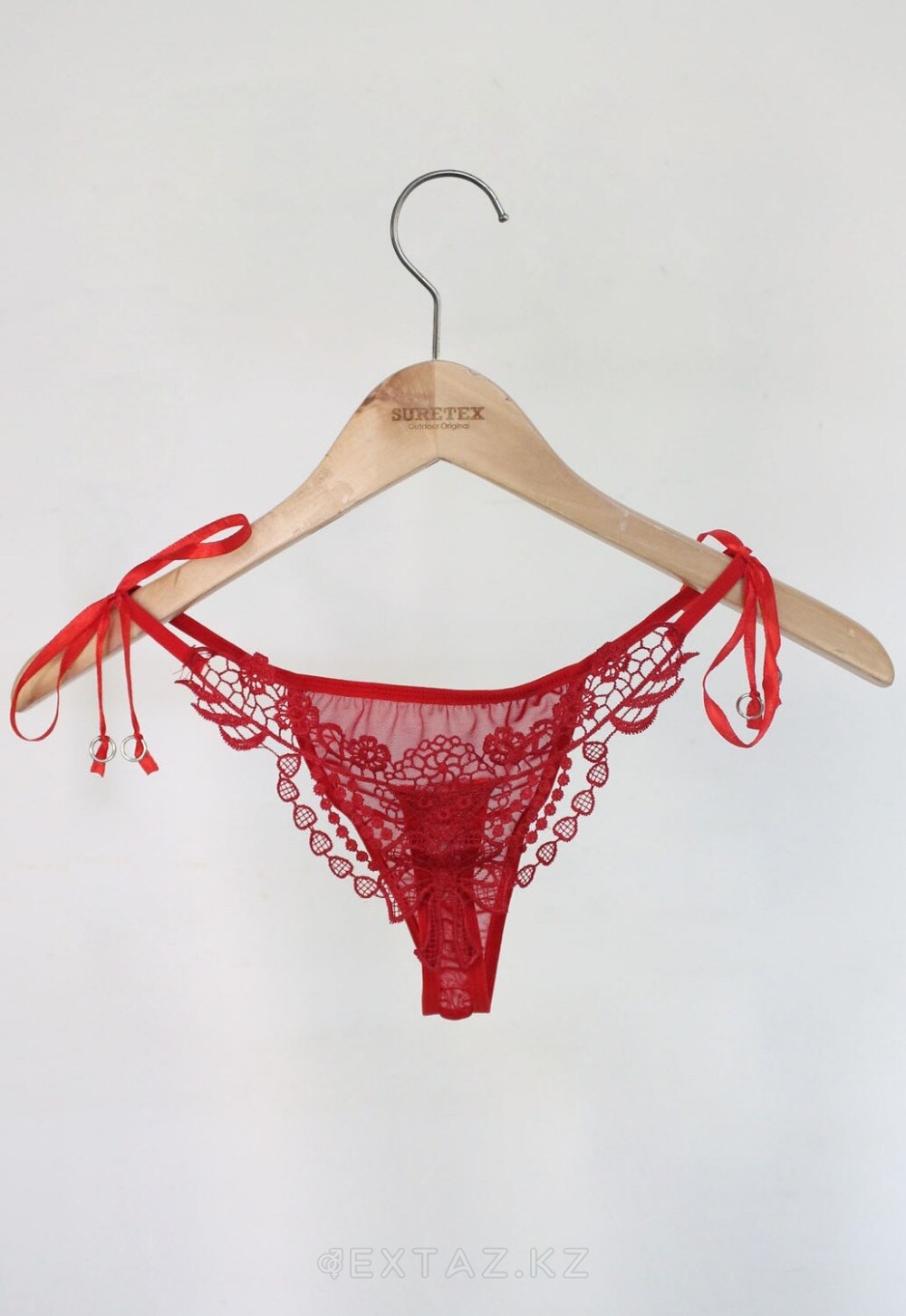Изящные кружевные стринги красного цвета смотрятся шикарно и роскошкно. Главный акцент у трусиков это вид сзади. Оригинальные кружевные вставки изысканно ложатся по изгибам Вашей фигуры. Такой фасон очень возбуждает. Трусики держатся на завязках, что не составит труда быстро и легко их снять. Воспользуйтесь анальными смазками для долгого и влажного наслаждения. Присмотрите для себя интересные интим-платья или игривые пэстисы на соски, чтобы ночь состоялась жаркой.
