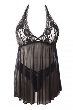 Сексуальный чёрный бэбидолл с открытой спинкой, размер S
