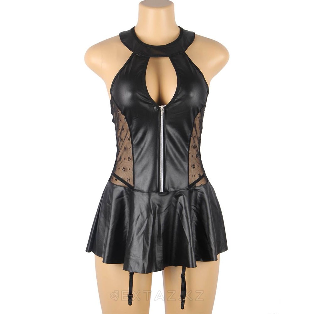 Ohyeah шулы юбкасы бар былғары көйлек + жіптер, XL-2XL