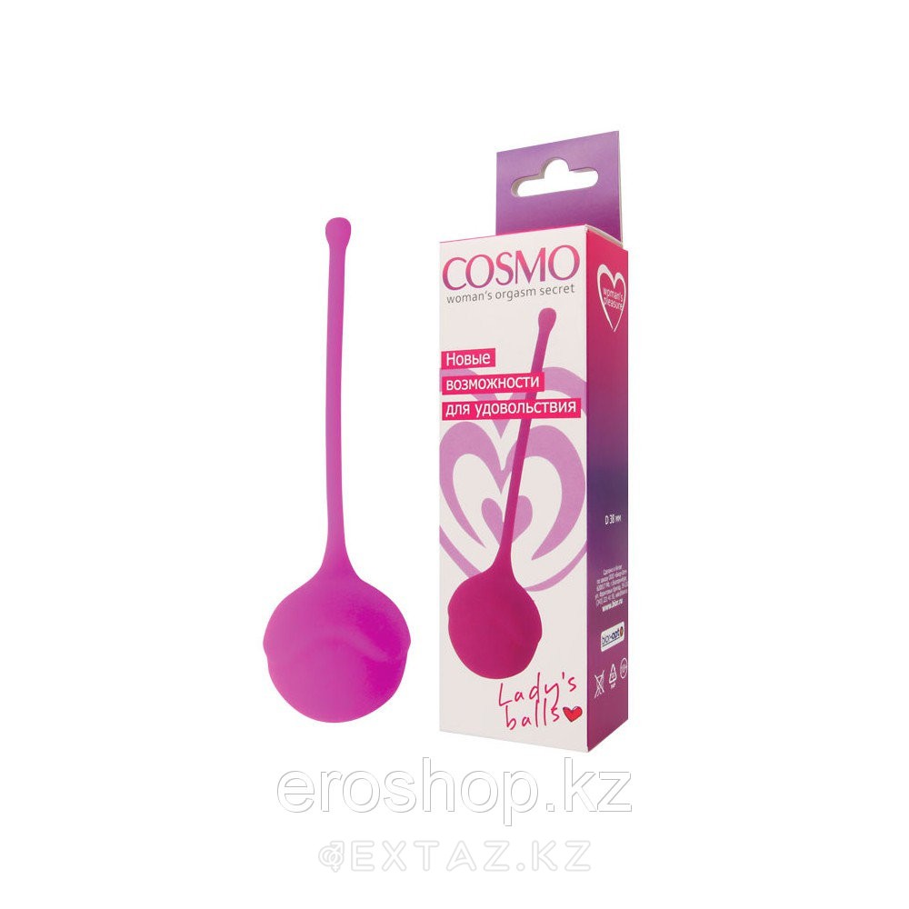 Простая и удобная в использовании секс-игрушка диаметром 38 мм из серии «COSMO» со смещенным центром тяжести (т.е. внутри большого шарика, находится шарик меньшего размера, который перекатываясь при движении, стимулирует мышцы влагалища) отлично подойдет женщинам, только начинающим практиковать вумбилдинг – комплекс упражнений для тренировки мышц половых органов. Аксессуар изготовлен из гипоаллергенного материала – силикона, имеющего бархатистую приятную на ощупь текстуру. Красивый розовый цвет обязательно понравится милым дамам. Компактность изделия позволит брать его с собой в различные поездки. Данная секс-игрушка очень удобна и проста в эксплуатации. Во время занятий вумбилдингом в тандеме с вагинальным шариком рекомендуется применять специальный гель для вумбилдинга «INTIM FITNESS»