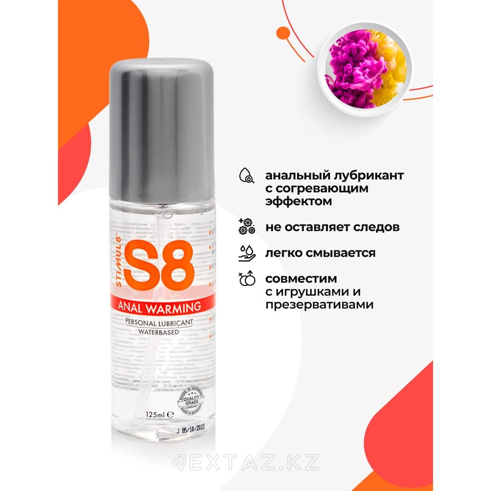 S8 Waterbase Anal Warming нәзік жылыну әсерін береді, бұл ең сезімтал аймақтарға жағымды жылу сезімін қосады. Майлау теріге қауіпсіз-құрамында парабендер, фталаттар, глютен, сульфаттар, бояғыштар немесе қатты консерванттар жоқ.