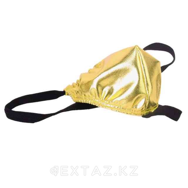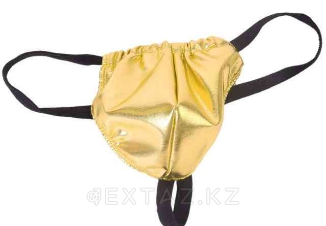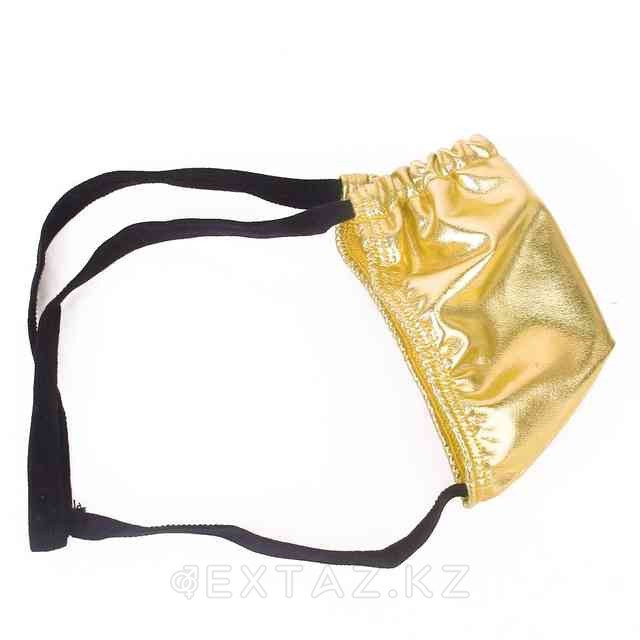 Блестящие, золотые стринги будут смотреться роскошно и экстравагантно. Подарите незабываемую ночь или страстный возбуждающий танец в таком белье. Трусики выполнены из винилового материала снаружи и дышащего материала изнутри, тем самым не доставляя дискомфорта во всех интимных зонах.