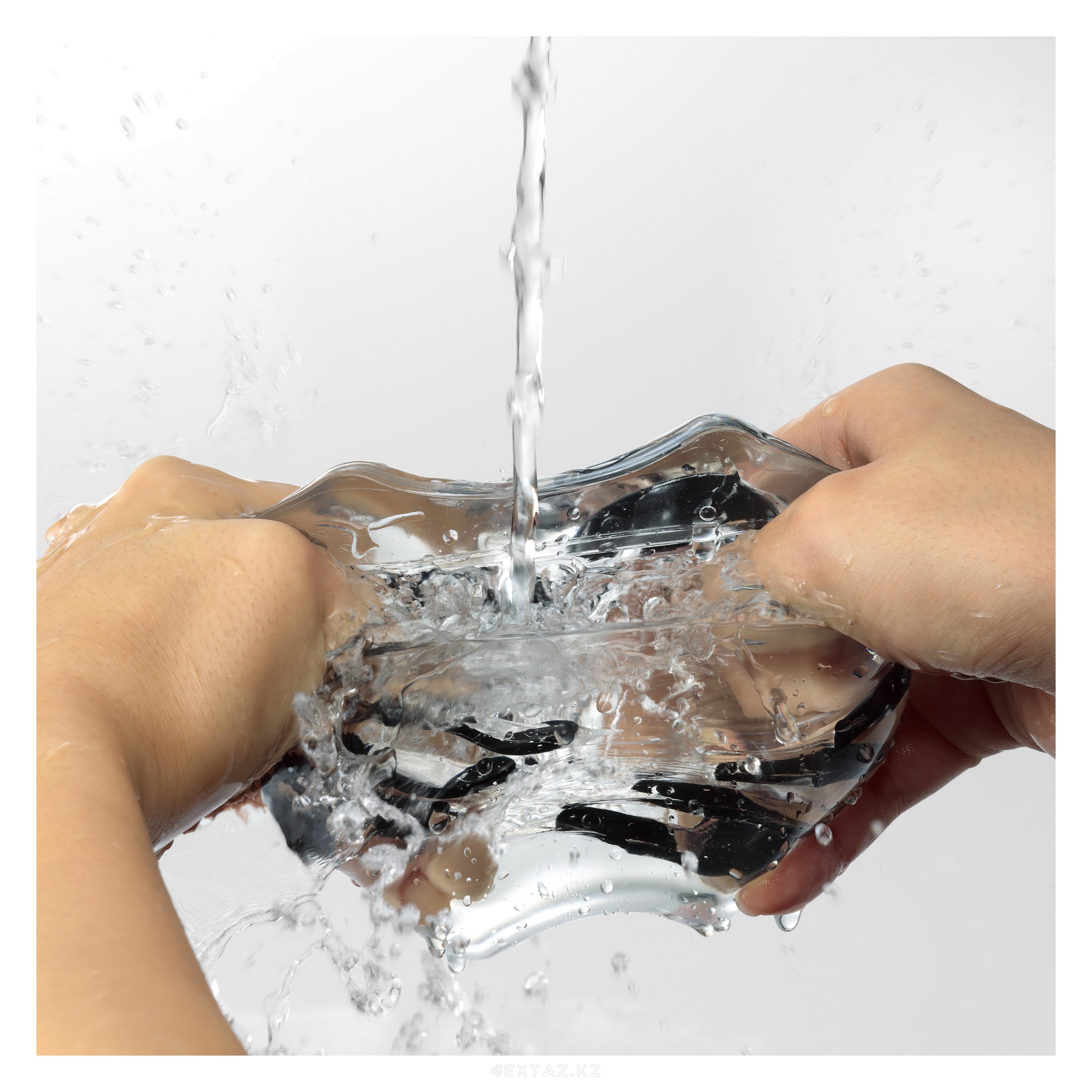 Мастурбатор водонепроницаем, а помытый удобно хранить в лотке. В комплект также входит образец смазки на водной основе, рекомендованной для использования.