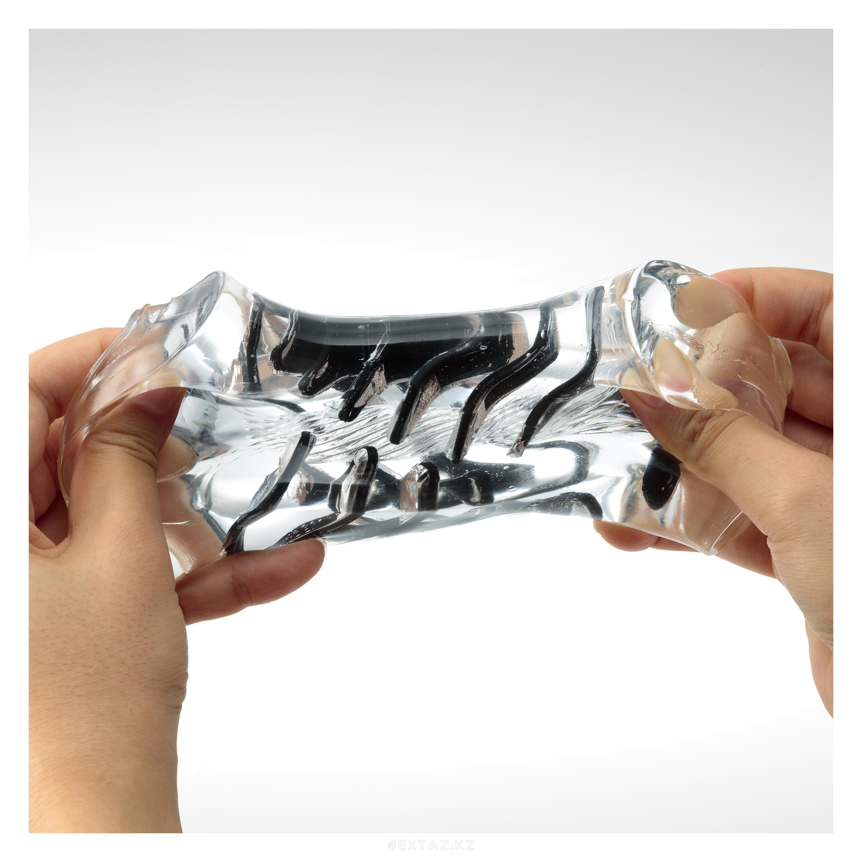 Мастурбатор имеет узкий тоннель с неровной поверхностью, который стимулирует пенис при каждом движении руки. Чем сильнее вы сжимаете мастурбатор ладонью, тем интенсивнее будет стимуляция, потому что парящие внутри черные полоски будут многократно усиливать удовольствие.