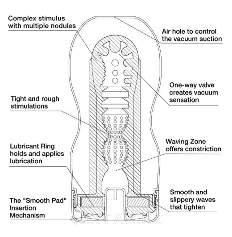 Внутри мастурбатора расположились специальные клапаны, благодаря которым за счет вакуума вы получаете ощущение глубокого минета. Эластичный нежный канал окутает Ваш половой член и доставит самые яркие наслаждения, которые в свою очередь приведут вас к ярчайшему оргазму! Внутренность изделия рельефная, покрыта бугорками и бороздками, которые и будут стимулировать ваш пенис.