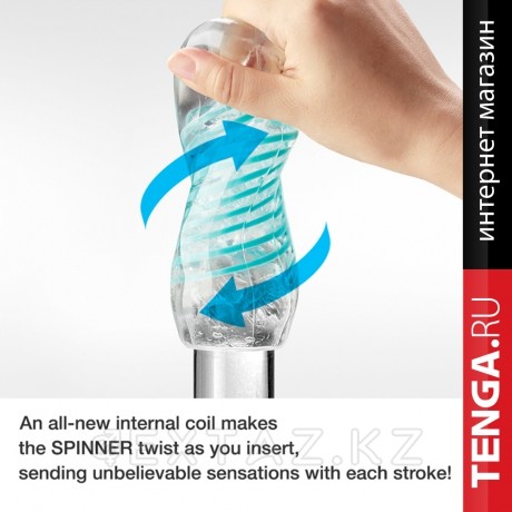 Внутренний рукав выполнен из приятного на ощупь термопластичного эластомера с мелкой точечной структурой, которая нежно обволакивает самую чувствительную зону мужского тела. Благодаря спиральному механизму «Go for a Spin» он самостоятельно крутится вокрус полового члена, доставляя упоительные ощущения во время фрикций.