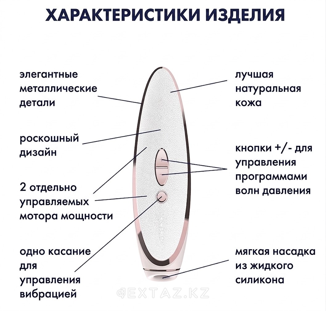 Екі тәуелсіз вибратор қозғалтқышының арқасында адамзаттың әдемі жартысының әрбір өкілі оған қолайлы режим мен клиторальды әсердің қарқындылығын табады. Оның дағдыларын толық зерттеу үшін құрылғыны ваннаға немесе душқа шақырыңыз. Тек су негізіндегі майлағыштар мен тазартқыштарды қолдану ұсынылады.