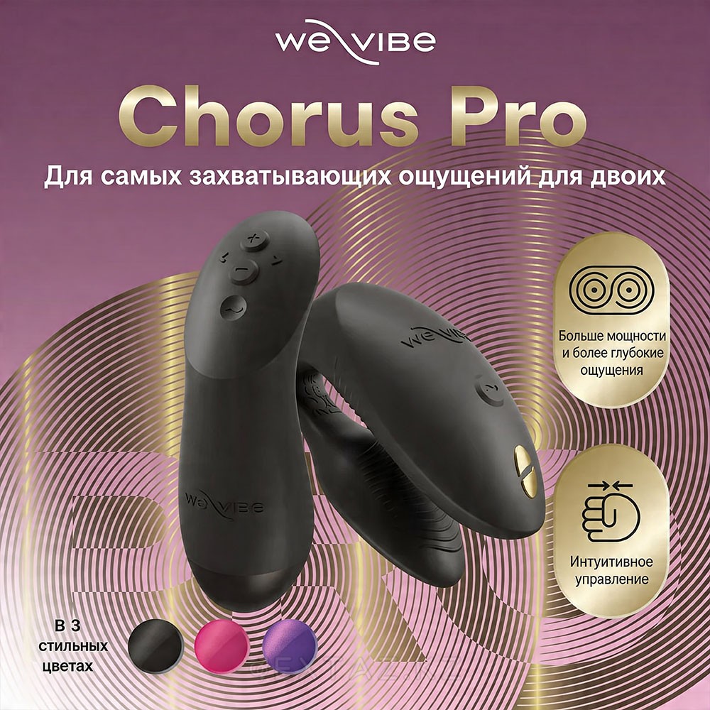We-Vibe Chorus Pro в черном цвете - это технологичное устройство для пар, в котором сочетаются гибкая конструкция, продуманная анатомическая форма и расширенные возможности управления. Модель разработана так, чтобы сохранять стабильное положение во время использования и обеспечивать одновременное воздействие на внутренние и внешние зоны без необходимости постоянной корректировки.