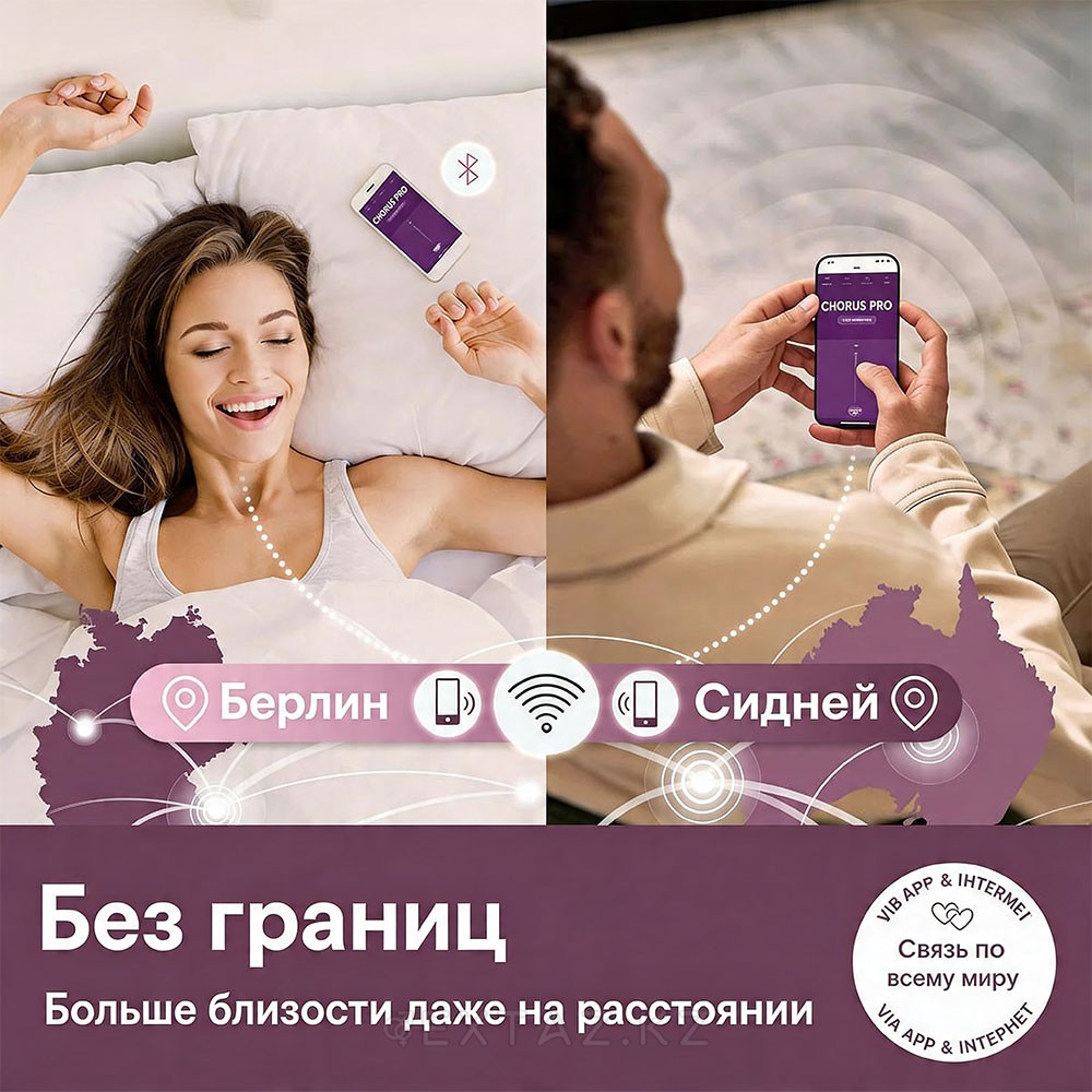Ключевая особенность Chorus Pro - технология Fusion Wave. Внешняя часть устройства оснащена двумя синхронизированными моторами, которые создают не просто вибрацию, а волнообразные импульсы с плавной сменой ритма. Такое воздействие ощущается глубже и разнообразнее по сравнению с классическими режимами, позволяя адаптировать интенсивность под разные сценарии.