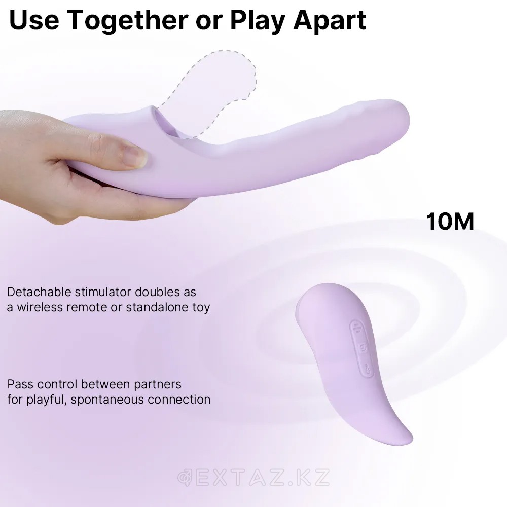 Жинаққа кіреді основной вибратор, съёмный стимулятор-пульт, магнитный кабель для зарядки, инструкция