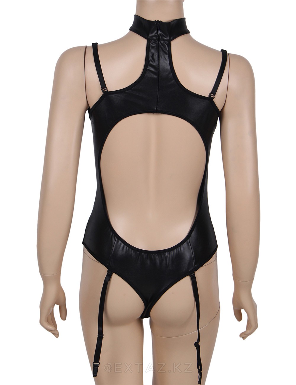 Боди виниловый Ohyeah Black Vinyl с пажиками для чулок, XL