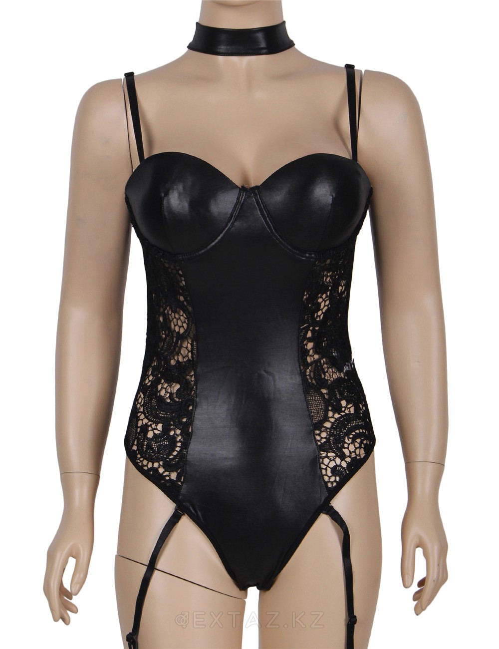 Тедди-грация из винила, с ажурными вставками и петлями для крепления чулков- это тот аксессуар, который не оставит ни одного мужчину равнодушным. Красивый бюстье с косточками приподнимает грудь, собирая ее и подчеркивая четкую линию декольте с двумя соблазнительными холмиками.