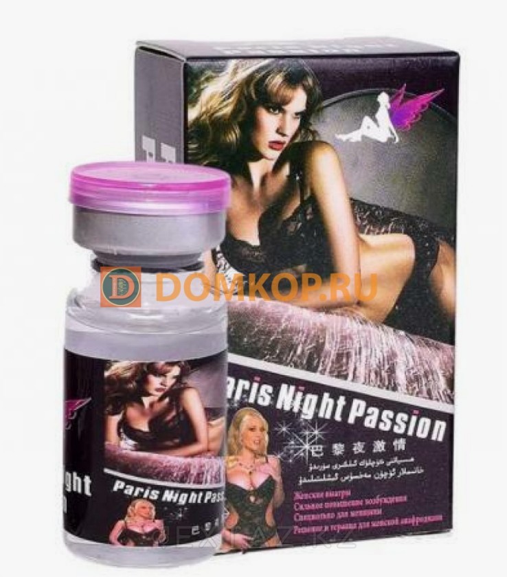 Paris Night Passion-бұл жыныстық құмарлықты арттыруға, құмарлықты оятуға және жыныстық қозуды арттыруға көмектесетін әйелдерге арналған стимулятор. Препарат жыныстық гормондардың өндірілуіне ықпал етеді, шаршауды жеңілдетеді және алдын-ала сипау процесінде әрекет етеді. Сұйықтық түссіз, иіссіз және дәмсіз, бұл оны кез келген сусындарда қолдануға ыңғайлы етеді.