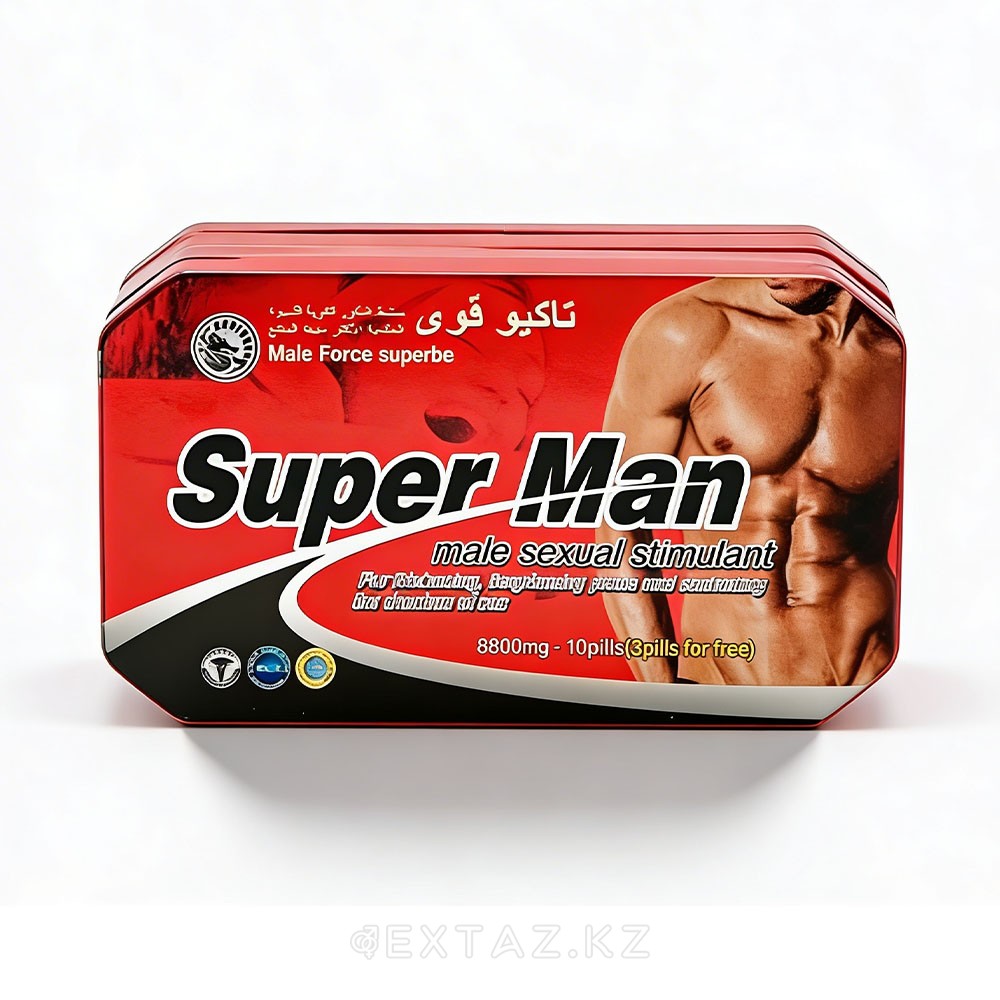 Super Man-бұл мужч либидоны арттыруға, жыныстық қатынасты ұзартуға және сезімді жақсартуға көмектесетін күшті құрал. Оны қабылдау арқылы сіз шаршауды ұмытып кетесіз және Қатарынан бірнеше жақындық әрекеттерінен ләззат ала аласыз.