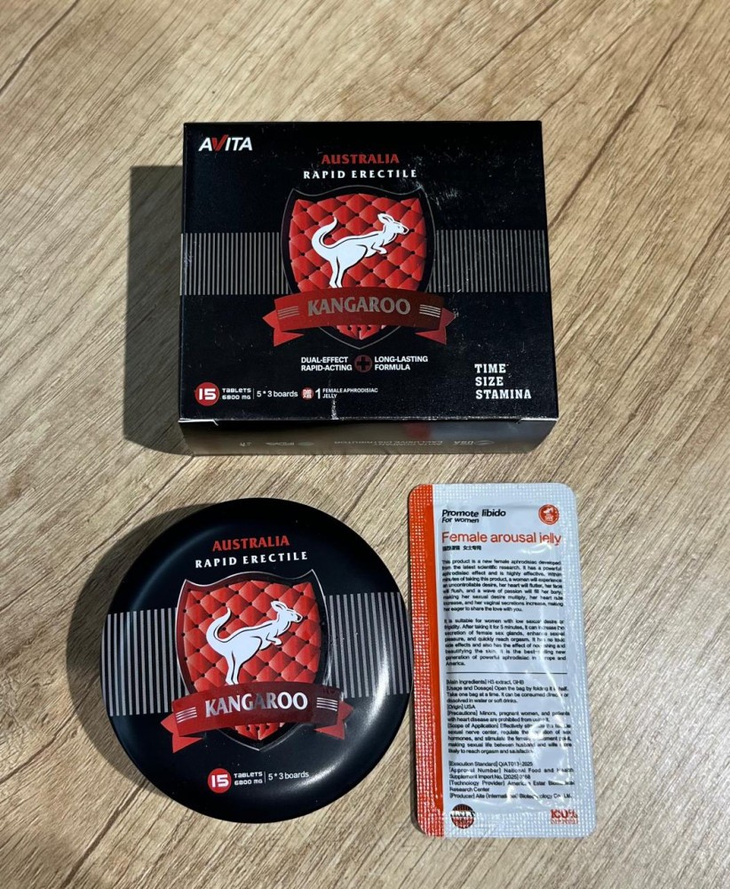 Kangaroo-бұл жұптық пайдалану және интимдік тәжірибені арттыру үшін жасалған барлығы бір формат жиынтығы. Жинаққа мужчин арналған таблеткалар және жақындық процесінде осы сәттің тактильді сезімі мен жалпы сезімталдығын арттыру үшін қолданылатын қосымша ынталандырушы гель кіреді.