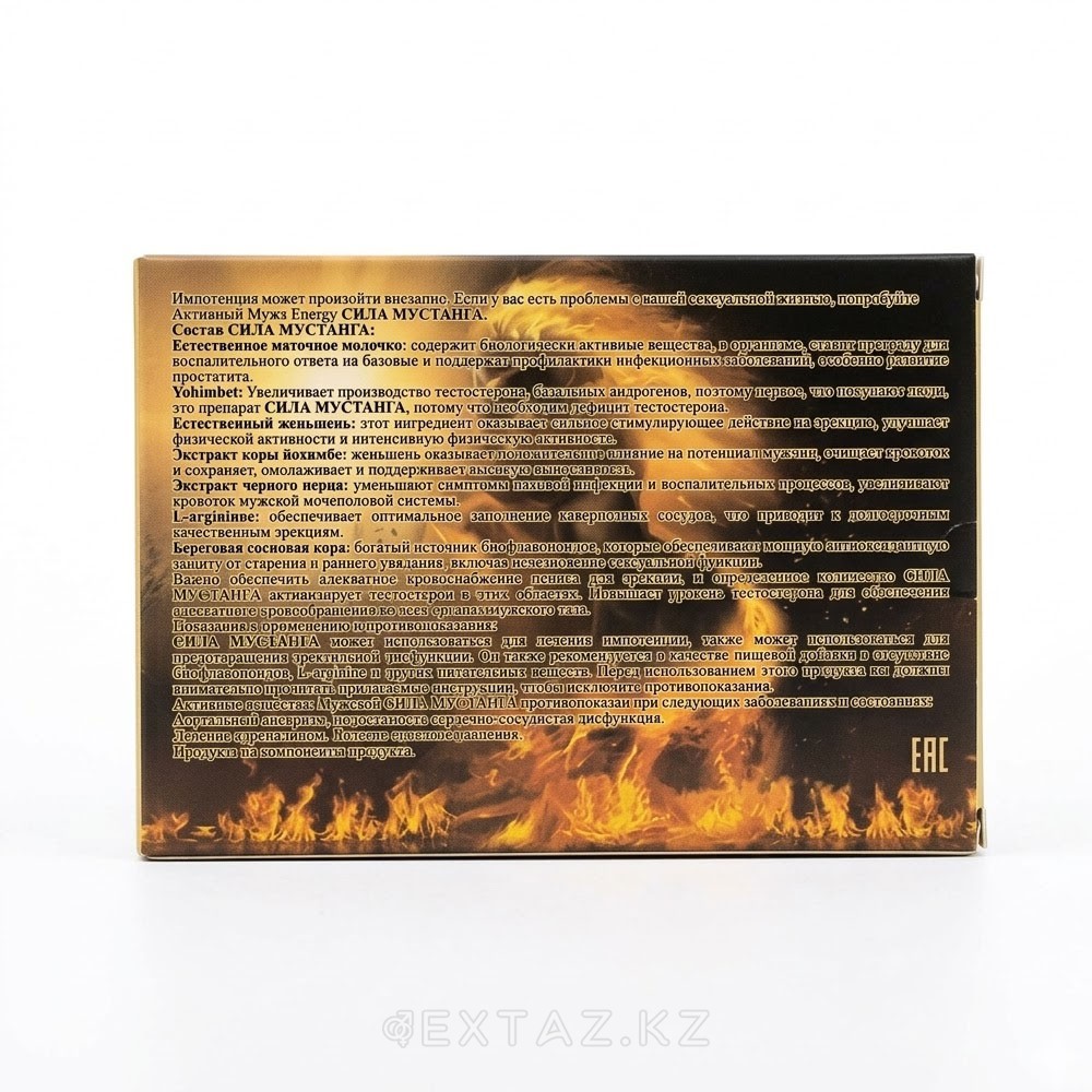 Мустангтың күші-муж потенциалын қолдауға және либидоны арттыруға арналған табиғи өсімдік кешені. Препарат жыныс мүшелерінің қан тамырларын нығайтады, сперматогенезді белсендіреді және сезімталдықты күшейтеді, жыныстық қатынастың ұзаруына және оның сапасын жақсартуға ықпал етеді.