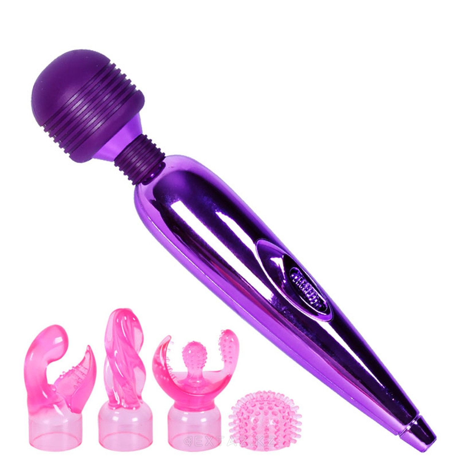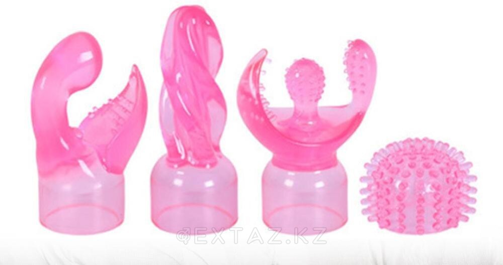 Массажер Wand с 4 насадками, которые позволяют почувствовать кардинально разные и яркие ощущения. Можно без труда за несколько минут достигнуть высшей степени наслаждения. Подходит для пользования в паре. Очень удобный комплект, нет необходимости искать насадки или другие девайсы. Все насадки выполнены из качественного силикона, представлены в различной форме. Каждая насадка делает упор на разные точки. Меняются быстро и легко. На массажере  регулируемые скорости вибратора. Перед использованием насадок рекомендуется промыть в горячей воде и обработать средством для чистки секс игрушек. Заряжжается от USB. Диаметр всех насадок 3,7 см.
